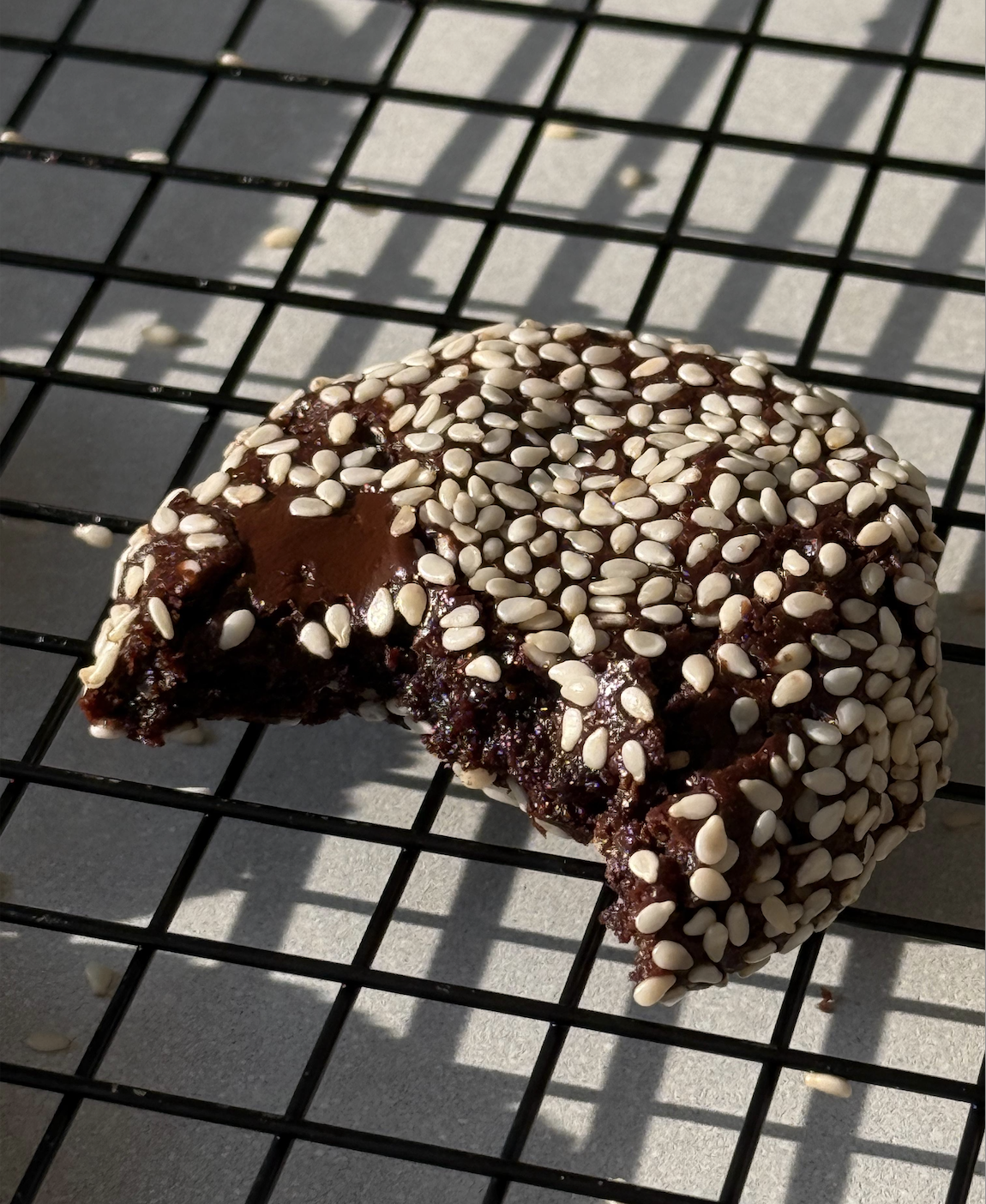 A fudgey cookie made with tahini & cacao, topped with sesame seeds for a hormone and blood sugar friendly treat.